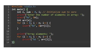 The document explains arrays as fundamental data structures in programming for storing and organizing elements of the same type, detailing their declaration, initialization, and common operations. It also covers passing arrays to functions, sorting algorithms, and searching techniques, including linear and binary search. Additionally, the document introduces multidimensional arrays, highlighting their applications and the syntax for accessing their elements.