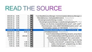 • Shows codeexecution time and GC allocations