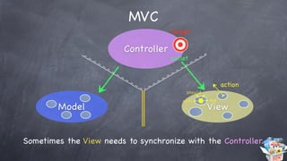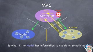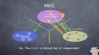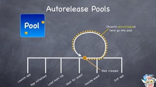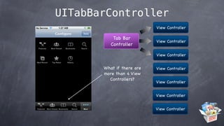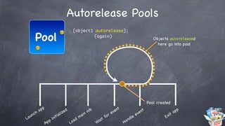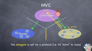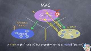 This document provides an overview of programming iOS apps with Objective-C, including how to get started, the Objective-C and Swift languages, Model-View-Controller (MVC) pattern, differences between desktop and mobile development, and human interface guidelines. Key topics covered include installing the necessary software, understanding core Objective-C concepts like classes, methods, and memory management, using view controllers and the MVC pattern to structure apps, and important considerations for mobile like limited resources and touch interfaces.