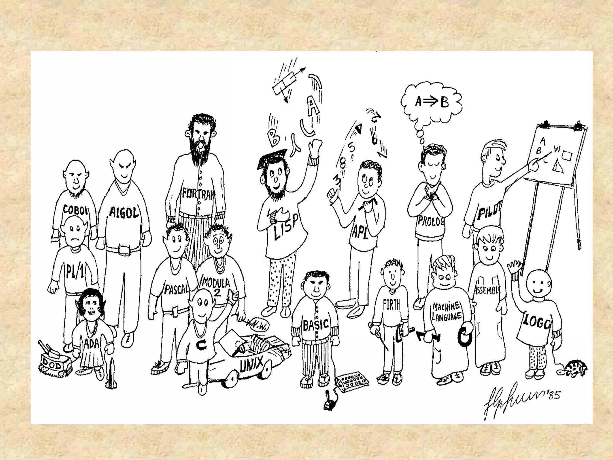 The document discusses various programming languages and their uses. It provides descriptions of several popular languages including C, C++, Visual Basic, Java, C#, PHP, Assembly, and Python. For each language, it briefly outlines characteristics like performance, ease of use, common applications, and portability. It also provides a high-level history of early programming languages.