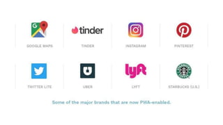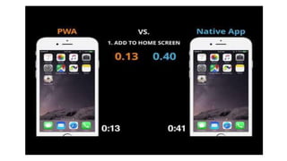 Progressive Web Apps (PWAs) aim to provide users with a native app-like experience through the use of web technologies. PWAs address some of the downsides of both native mobile apps and regular mobile web apps. Key aspects of PWAs include the use of a web app manifest, service workers, and an app shell model to create reliable, fast and engaging experiences. PWAs can reduce load times, be installed, work offline, and receive push notifications similar to native apps while maintaining the development and distribution advantages of web apps.