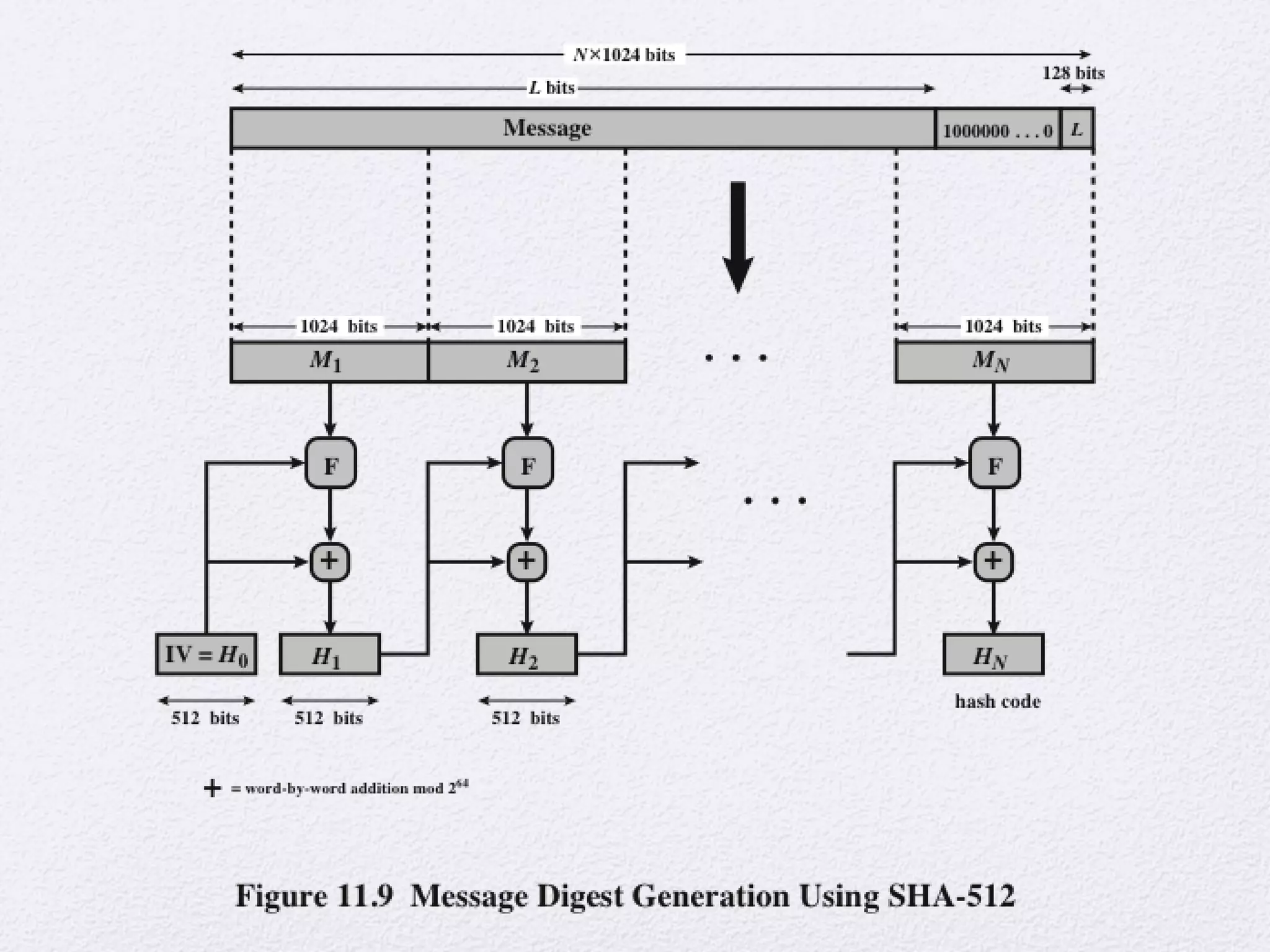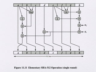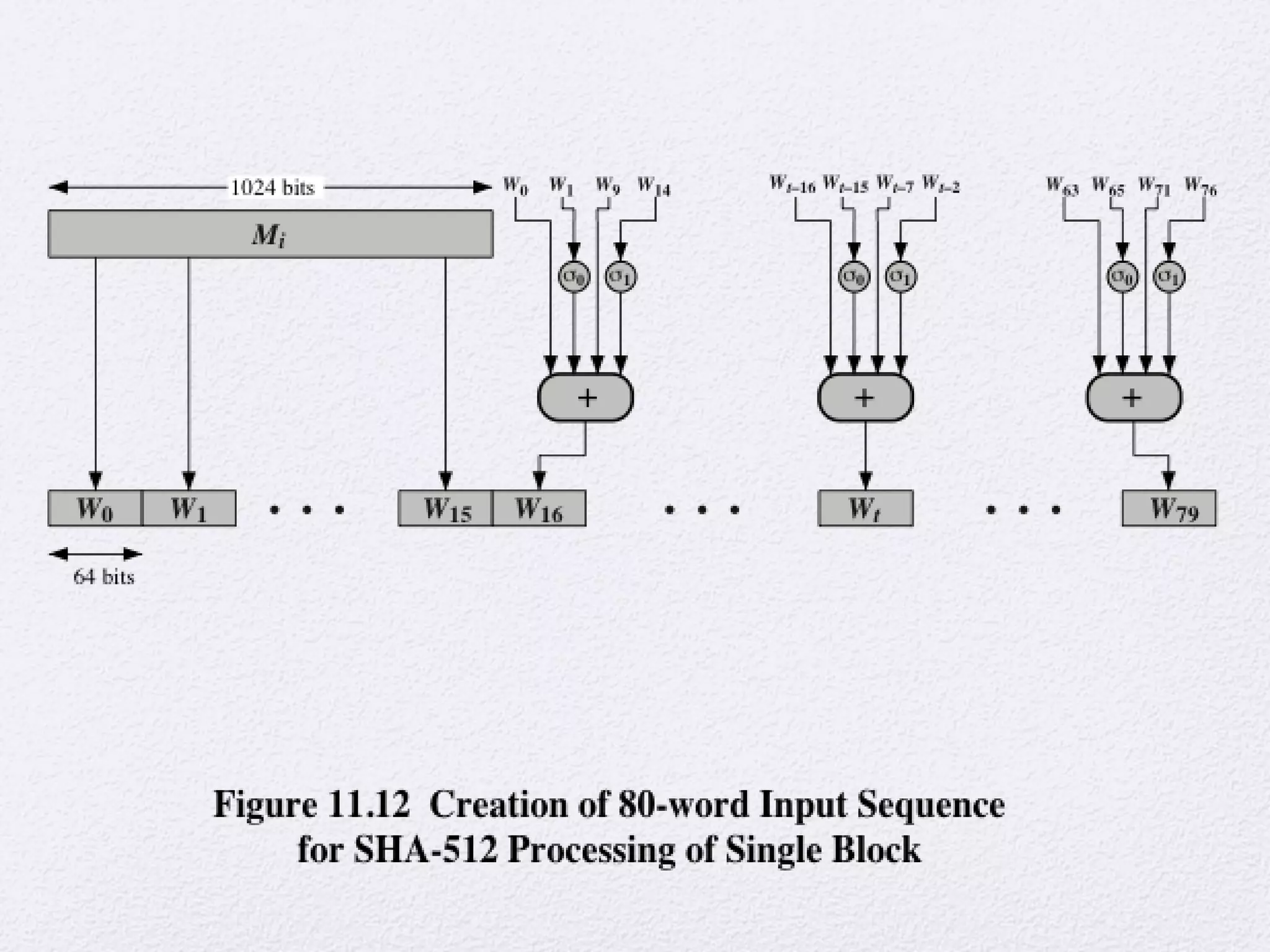 Note: All sizesare measured in bits. Table 11.3 Comparison of SHA Parameters