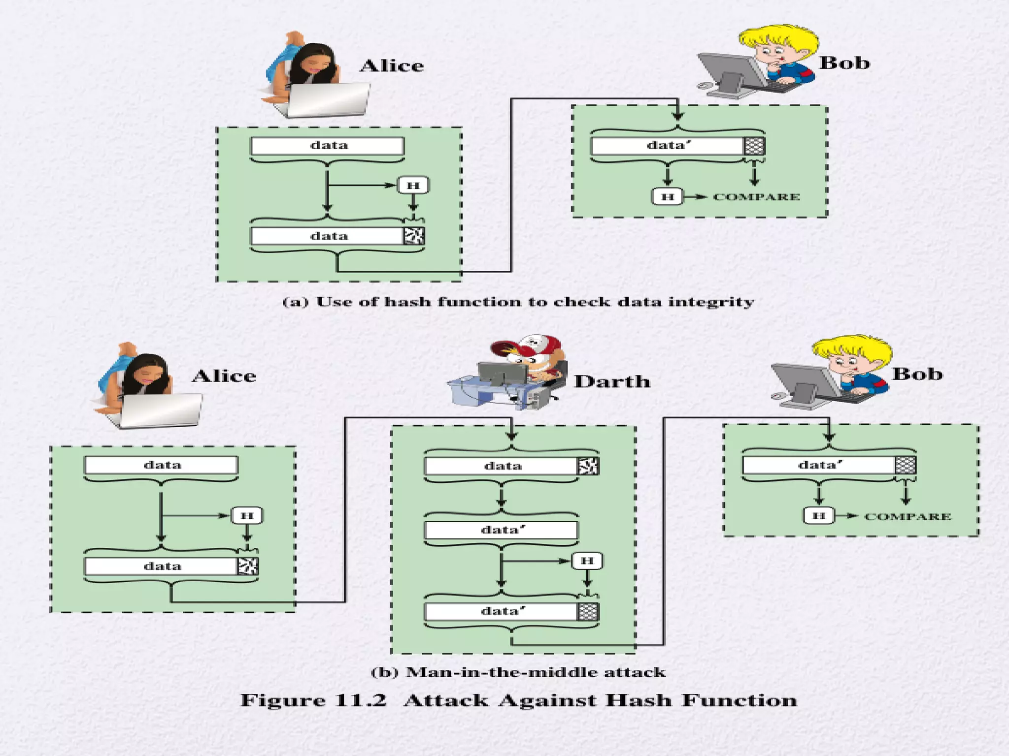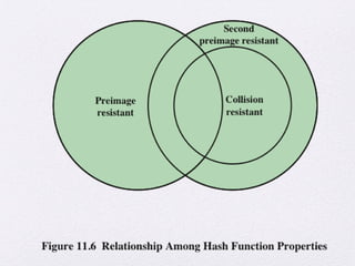 * Resistance requiredif attacker is able to mount a chosen message attack Table 11.2 Hash Function Resistance Properties Required for Various Data Integrity Applications