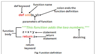 SECTION B 1. Writeabout functions with an example. 2. Explain how to pass parameters to a function with an example. 3. Write about built-in functions. 4. Explain variable number of arguments. 5. Explain function definition with an example. 6. Write a short notes on scope of functions. 7. Write about type conversion with an example. 8. Write a notes on type coercion with an example. 9. Write about time module with an example. 10. Write about sys module with an example. 11. Explain local scope with an example. 12. Write about global scope with an example. 13. Explain about types of arguments used in function. 14. Write a short notes on lambda functions. 15. Explain the help module in python.