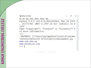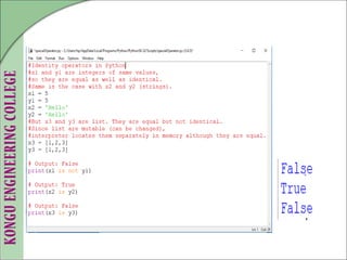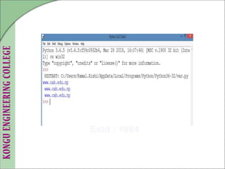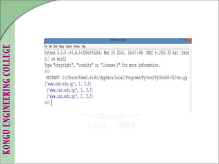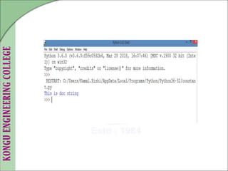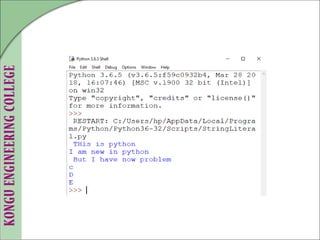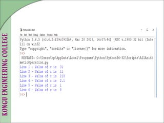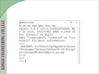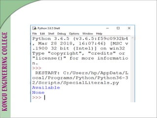 The document provides an introduction to Python programming. It discusses that Python is a high-level, interpreted, object-oriented, and general purpose programming language. It can be used for web development, scientific computing, desktop applications, and more. The document then covers Python basics like data types, variables, literals, operators, control flow statements, functions, modules and packages. It also discusses installing Python on Windows and writing the first Python program.