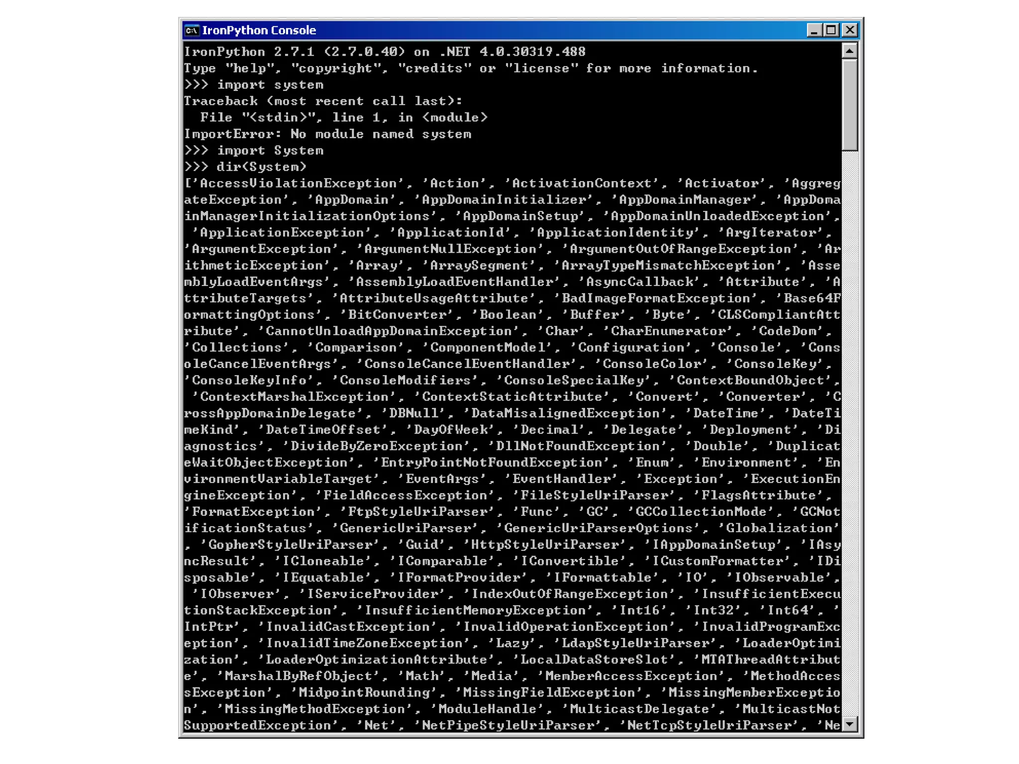 IronPython is an implementation of Python that runs on .NET and Mono frameworks. It supports an interactive console and makes .NET libraries available to Python while maintaining compatibility. There is tooling integration with Visual Studio.