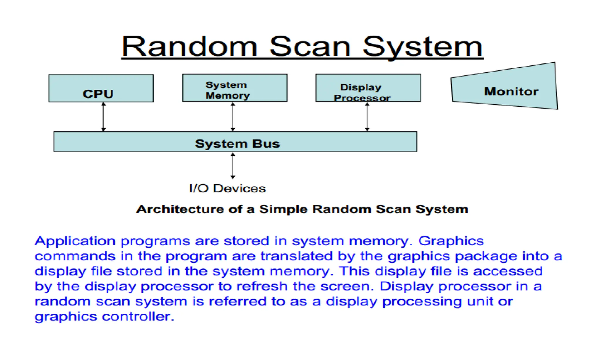 •Random Scan System: In this type of system, the computer uses an electron beam (like a tiny "pencil" of