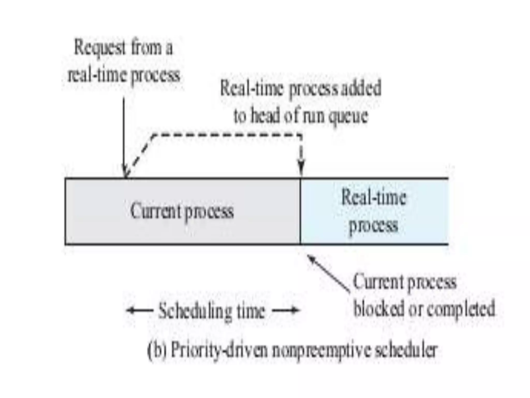 A real-time schedulingintended to serve real-time application requests. It must be able to process data as it comes in, typically without buffering delays. Processing time requirements (including any OS delay) are measured in tenths of seconds or shorter. Determines the order of real-time task executions Highest priority process runs first