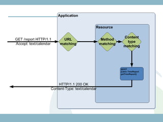 The document discusses REST with JAX-RS and security in Java EE 6, covering how to build a simple RESTful service using JAX-RS annotations to map resources and methods, support multiple representations, and link resources together, and how to secure the service by configuring authentication, authorization, and encryption in the web.xml deployment descriptor.