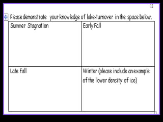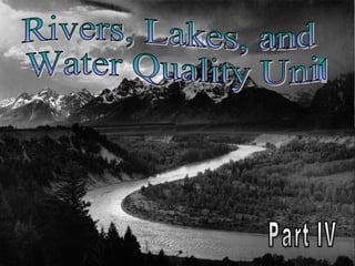 • This PowerPointis only small part of my Rivers, Lakes, and Water Quality Unit. – This unit includes a four part 2,150 slide PowerPoint roadmap. – 13 page bundled homework, modified version, 8 pages of lesson notes, built-in visual quizzes, review game, 23 video links, hands-on activities with instructions and questions, crossword, rubrics, projects, answer keys, readings, materials list, curriculum guide, and much more. – http://sciencepowerpoint.com/River_and_Water_Quali ty_Unit.htm