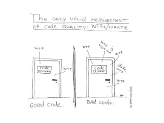 The document discusses the importance of writing clean code in Scala compared to Java, highlighting the challenges developers face such as laziness and lack of knowledge about good coding practices. It explains Scala's concise syntax, improved class handling through case classes, and the benefits of functional programming like pattern matching and option types. Additionally, it touches on development practices that encourage self-improvement and effective coding without financial rewards.