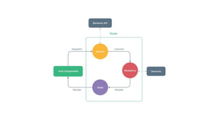 The document discusses scalable front-end development using Vue.js, highlighting its benefits such as improved development speed, reduced technical debt, and an easy learning curve. It emphasizes the advantages of single-page applications (SPAs) and includes tools like Vue Router and Vuex for state management. The conclusion asserts that Vue.js simplifies building scalable JavaScript applications while ensuring SEO compatibility.