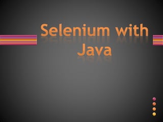 WebDriver is a web automation framework that allows testing across different browsers. It supports many programming languages like Java, PHP, Python. The document provides steps to install Java, Eclipse IDE, Selenium Java client driver and configure Eclipse to use WebDriver. It includes an example code to launch Firefox, get and verify page title, and close the browser. WebDriver provides useful get commands like get(), getTitle(), getPageSource(), getCurrentUrl(), getText().