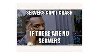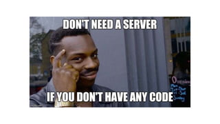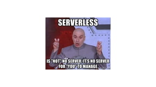 2. It notes some potential downsides of serverless like difficulties testing and debugging as well as security and vendor lock-in concerns.