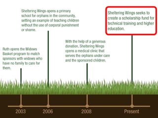 Based on the document, Sheltering Wings Gifts offers a gift package for $199 that includes 1 month of shelter, food and care for an abused or neglected child. The gift package helps support the mission of Sheltering Wings, a nonprofit organization providing refuge for children escaping hard lives. Donating this package allows someone to give the gift of hope and safety to a child in need.