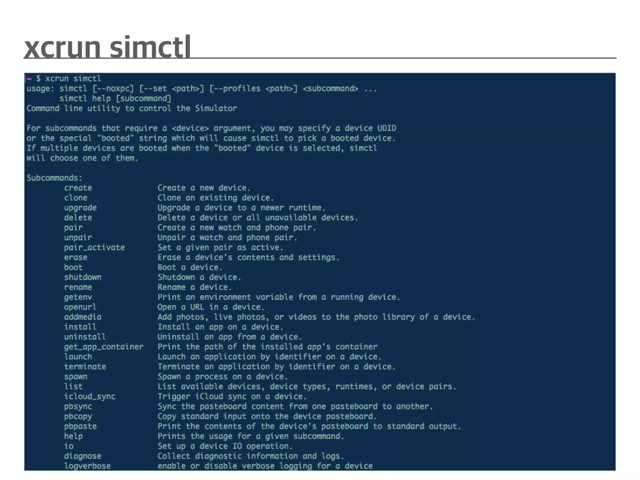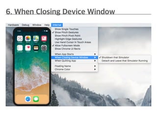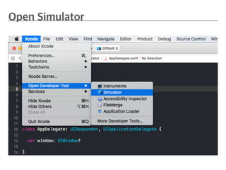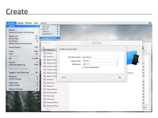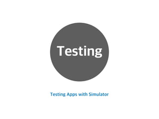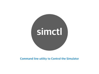 Simulator allows you to rapidly prototype and test builds of your app during development. It provides tools to manage simulator devices, install and launch apps, pass arguments, and test in different configurations and languages. The simctl command can be used to control simulators, while Xcode builds and deploys apps to the simulator.