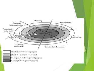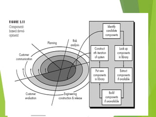 The document discusses various software development process models, explaining their structures, advantages, and limitations. Key models include the Waterfall, Incremental, Rapid Application Development (RAD), Prototyping, Spiral, and Concurrent Development models, each serving specific project needs and contexts. It emphasizes the importance of adapting models to enhance software quality and manage risks effectively.
