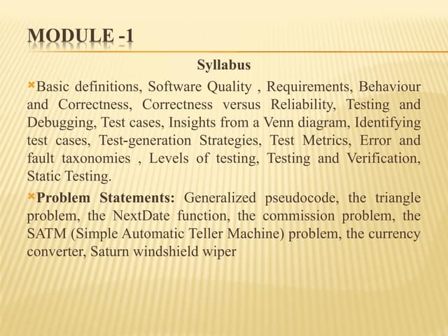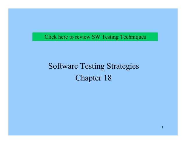 The document provides an overview of software testing and debugging. It discusses the objectives of software testing as finding errors prior to delivery and checking if the software matches its specifications. It also distinguishes between testing and debugging, with testing being an assessment process and debugging involving defect removal. The document then covers various software testing techniques like white box testing, black box testing, unit testing, integration testing, validation testing, and system testing. It provides details on each technique including their objectives, processes, and examples. The document concludes with a discussion of debugging and the debugging process.