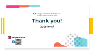 The document discusses Flutter, an open-source UI software development kit by Google used for building applications across multiple platforms from a single codebase, highlighting its speed, ease of learning, and community support. It also covers APIs, their importance in enabling communication between applications, and security measures like authentication tokens and API keys. Furthermore, it details the steps for integrating a REST API in Flutter applications, using JSON for data interchange.