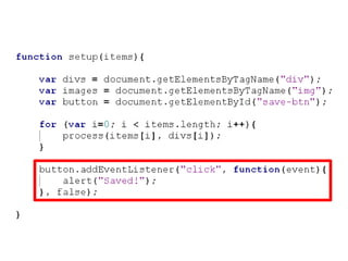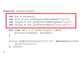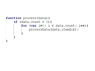 Nicholas C. Zakas discusses common JavaScript performance issues and recommendations to address them. He covers scope management, data access, loops, and DOM manipulation. The key points are to minimize scope chain lookups, store frequently accessed data in local variables, optimize loops, avoid reflows from DOM changes, and leverage modern browser optimizations. Overall, the talk provides practical tips to speed up JavaScript code by addressing issues related to scope, data access patterns, loops, and DOM interactions.