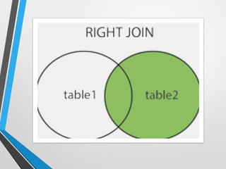 This document provides an overview of SQL (Structured Query Language). It defines SQL as a standard language for accessing and manipulating databases. It describes what SQL can do, such as execute queries, retrieve, insert, update and delete data. It also covers important SQL statements (SELECT, UPDATE, DELETE, INSERT), clauses (WHERE, ORDER BY), operators (LIKE), joins, and functions. In addition, it discusses SQL data types, constraints, creating tables and indexes.
