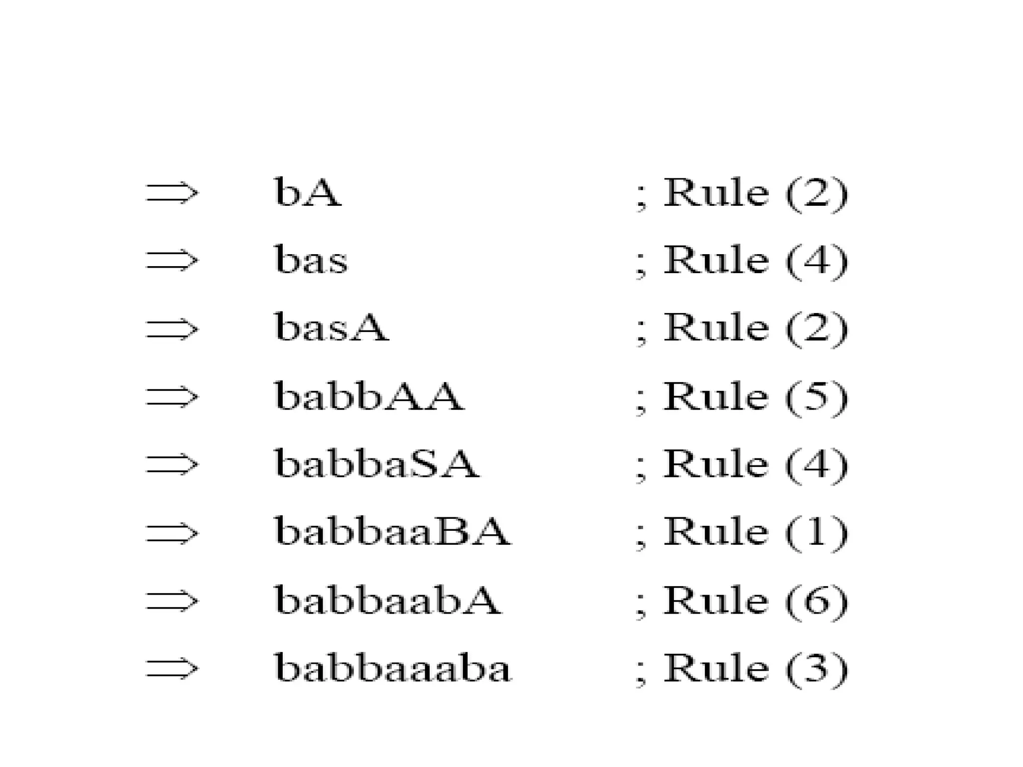 Rules for EnglishLanguage 1) <Sentence>  <NP><VP> 2) <NP>  <article><noun> 3) <VP>  <verb> 4) <VP>  <verb><adverb> 5) <article>  The 6) <noun>  student 7) <verb>  studies 8) <adverb>  hard 9) <adverb>  slowly