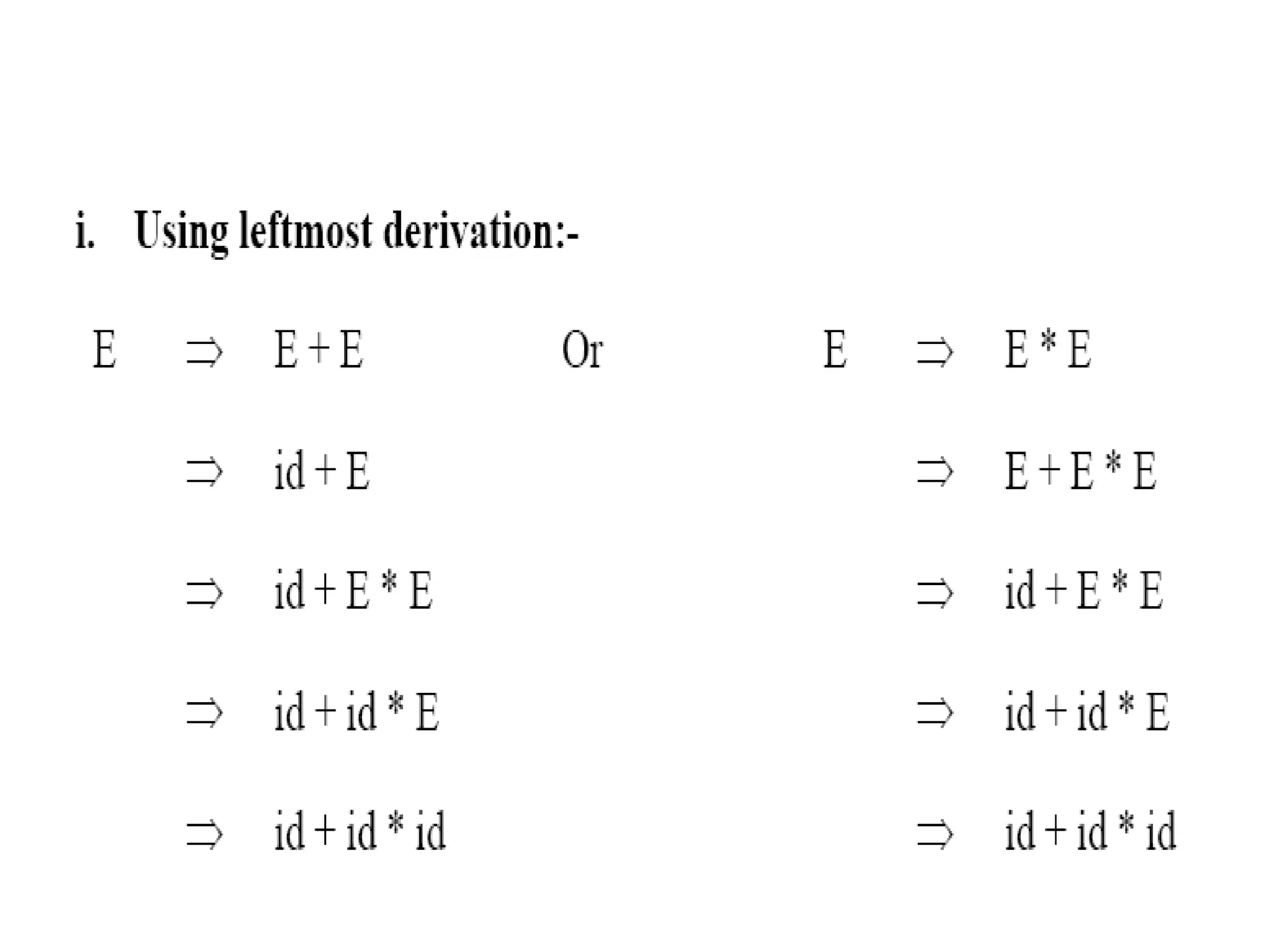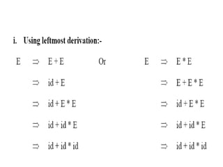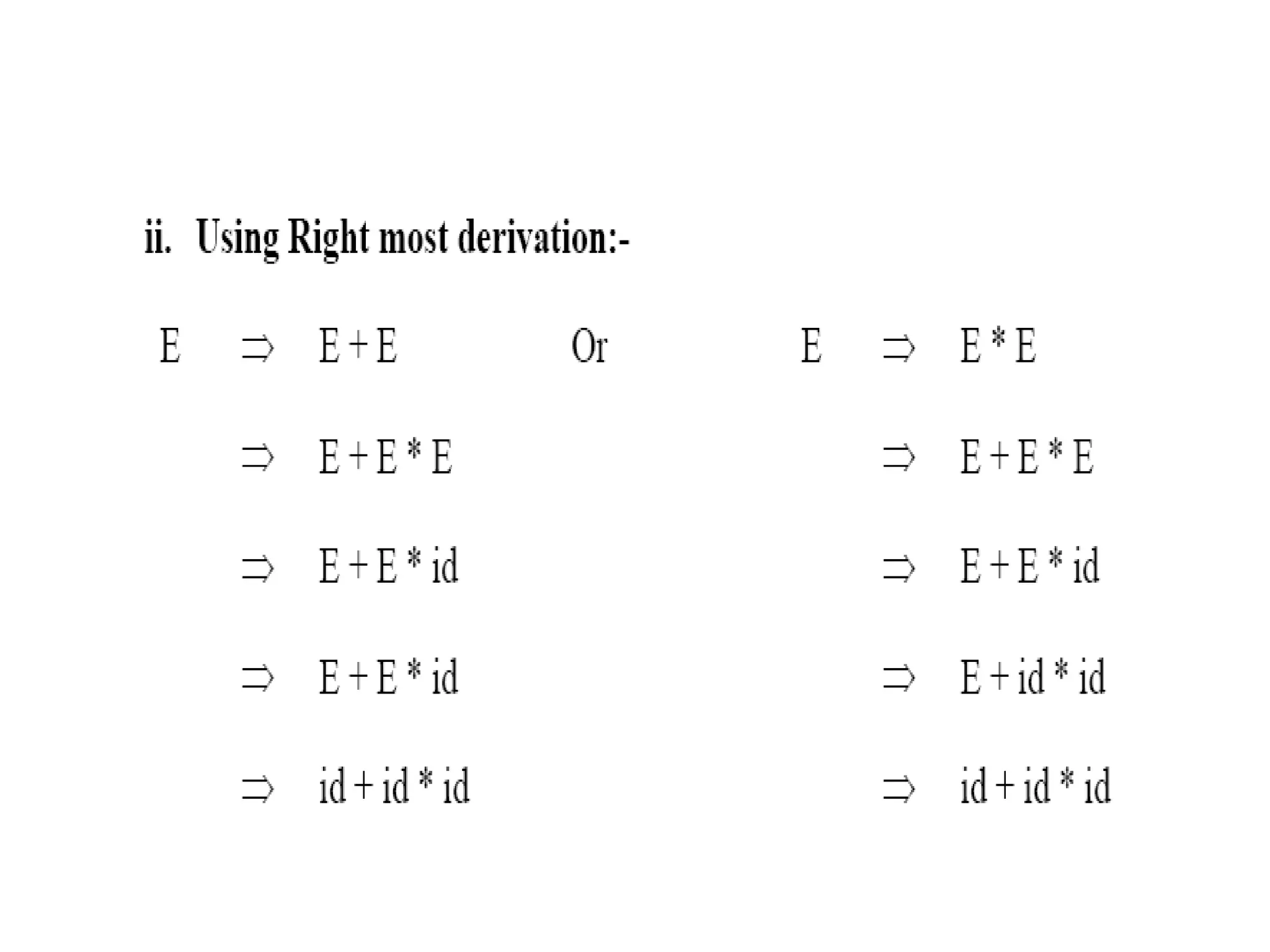 • Ex. Considerthe full grammar, • E → E+E • E → E*E • E → id • Let us derive the string “ id + id * id”
