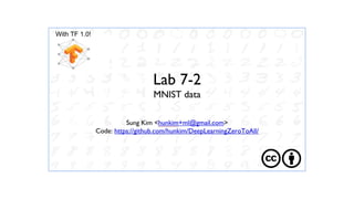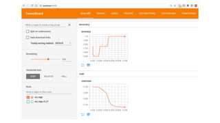 This document contains slides for a TensorFlow basics lab. It introduces TensorFlow and computational graphs, shows how to install TensorFlow and check the version, and demonstrates a simple "Hello World" TensorFlow program. It also discusses placeholders, variables, feeding data, and building linear regression models in TensorFlow to minimize a cost function. The full Python code for linear regression is provided.