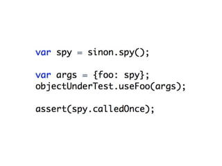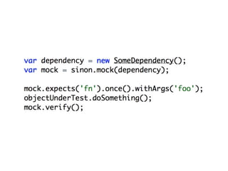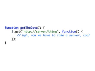 The document discusses testing JavaScript code. It covers why JavaScript is hard to test, how to make JavaScript more testable, and tools that can help with testing. Specifically, it notes that untestable JavaScript code is a major problem, provides examples of testable versus untestable code, and recommends using unit test frameworks like Jasmine along with functional test frameworks. It also recommends the sinon.js, ember-testing, and Karma tools to facilitate testing.
