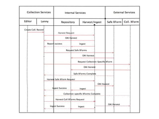 The document discusses managing metadata aggregation through linked open data (LOD). It outlines that current LOD projects only expose select data for experimentation and questions whether LOD can succeed on that basis alone without actual use. The document then proposes a workflow for managing metadata that involves obtaining data, storing it as statements in a cache rather than a database, evaluating and improving the data using specialized services, and publishing improved data in an ongoing and iterative process. It emphasizes developing automated and specialized services to continuously improve data quality and the use of a cache to manage metadata from multiple sources over time with detailed provenance.