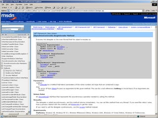 C# threads are managed by the System.Threading.Thread class and are passed a function using a ThreadStart delegate. Threads can be started and have properties like IsBackground that indicate their state.