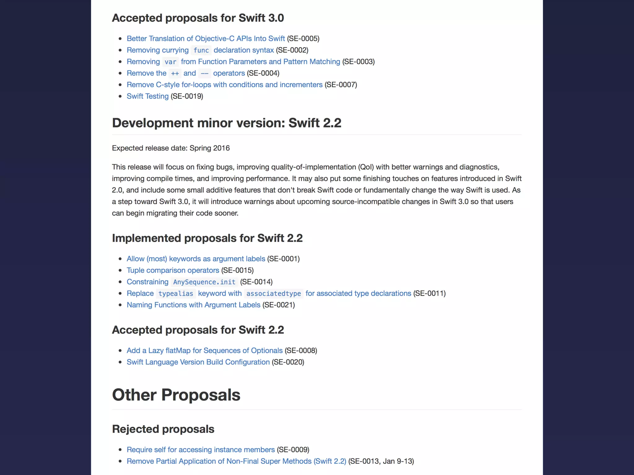 ...and Beyond: Swift3.0 var studentScore = 76.0 func scaleScore(inout score: Double) { score *= 1.1 } scaleScore(&studentScore) studentScore // 83.6 if var someValue = someValue { someValue = "Cadabra" } var someValue: String? = "Abra"