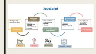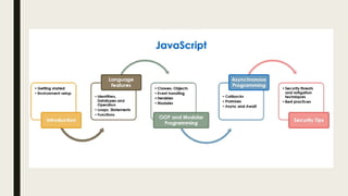 The document provides an overview of JavaScript, detailing its evolution as a client-side programming language and its advantages in developing dynamic web applications. It explains the necessity of JavaScript for reducing server requests and enhancing response times, and outlines methods for writing JavaScript, including inline, internal, and external scripting. Additionally, the document includes example questions and answers related to JavaScript functionality and its execution environment.