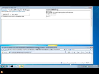 The document discusses the use of Selenium and PHPUnit for user acceptance testing, outlining steps to record, convert, and automate tests across multiple browsers. It emphasizes that Selenium tests enhance but do not replace regular unit testing, and introduces strategies for setting up a Selenium Grid for continuous integration. The presentation concludes with examples of test cases and coding best practices aimed at facilitating effective testing automation.