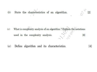 • Algorithms: Space complexity, Time complexity, Asymptotic