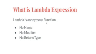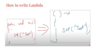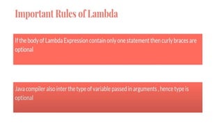 • From Java 8 onwards, lambda expressions can be used to represent the instance of