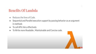 • Functional interfacesare included in Java SE 8 with Lambda expressions and Method