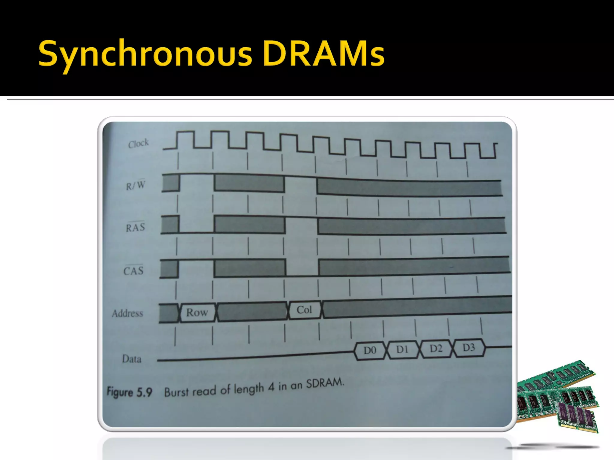 Access mechanisms for DRAM, including row and column addressing, refresh cycles, and burst read operations.