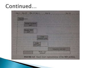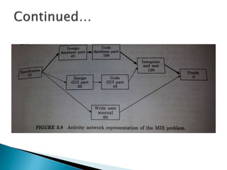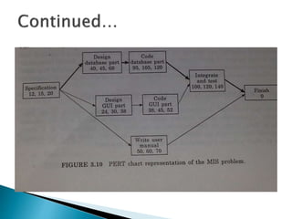 The document outlines the responsibilities and skills required for software project managers, emphasizing project planning, monitoring, and control. It details various estimation techniques, including empirical, heuristic, and analytical methods for assessing project size and effort using metrics like lines of code and function points. Additionally, it discusses the COCOMO model for estimating project parameters based on development complexity and provides formulas for different types of software projects.