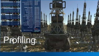 The document presents optimization strategies for game development, emphasizing the profiling of performance bottlenecks in both CPU and GPU. It discusses various optimization techniques related to scripting, physics, model geometry, textures, shaders, and lighting to improve game efficiency. The core philosophy revolves around continuous profiling, testing, and identifying the largest areas for improvement to create better-performing games.