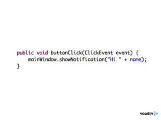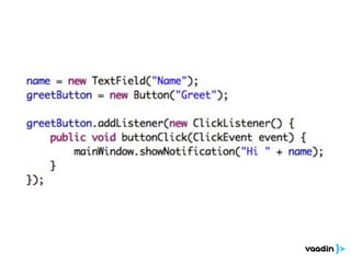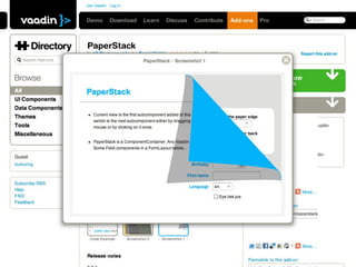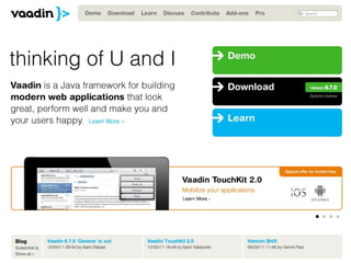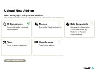 Vaadin is a UI framework for building rich web applications in Java without relying on client-side JavaScript or plug-ins, providing a server-side architecture that simplifies development and enhances user experience. It allows developers to create applications with strong typing, excellent tooling, and faster deployment while facilitating collaboration through a community-driven approach. Vaadin supports various data sources and is compatible with major Java application servers, aiming to provide a streamlined, robust alternative to traditional fat web clients.