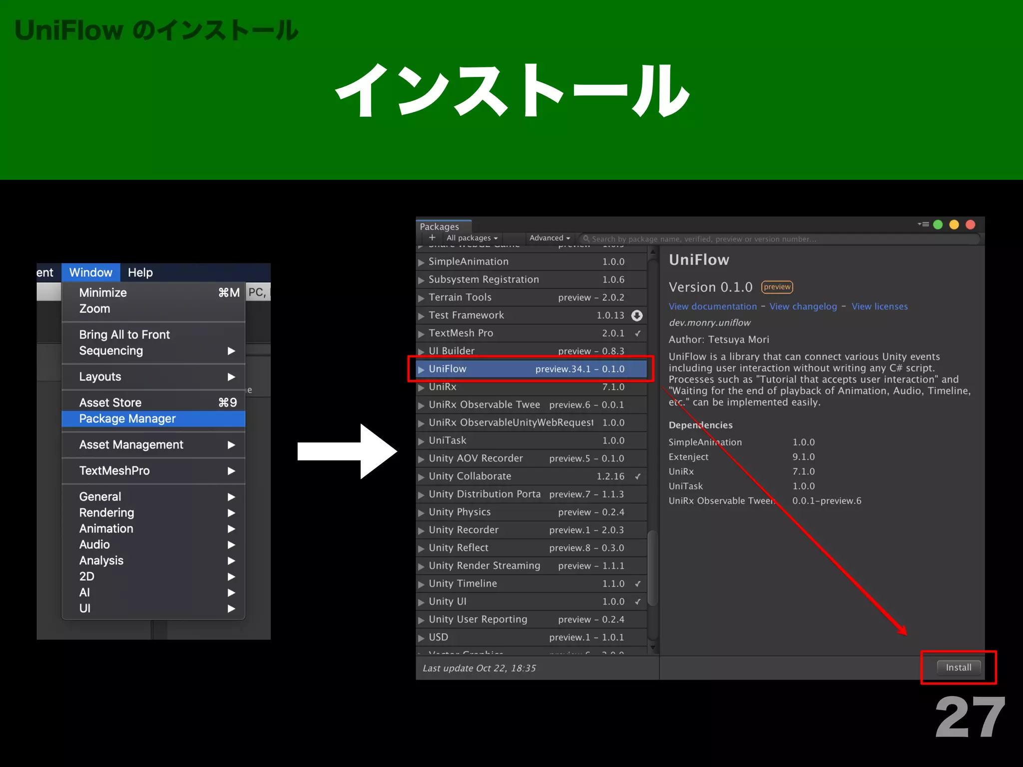 Packages/manifest.json](https://image.slidesharecdn.com/slide-191024050511/75/Visual-Programming-Framework-for-Unity-UniFlow-26-2048.jpg)