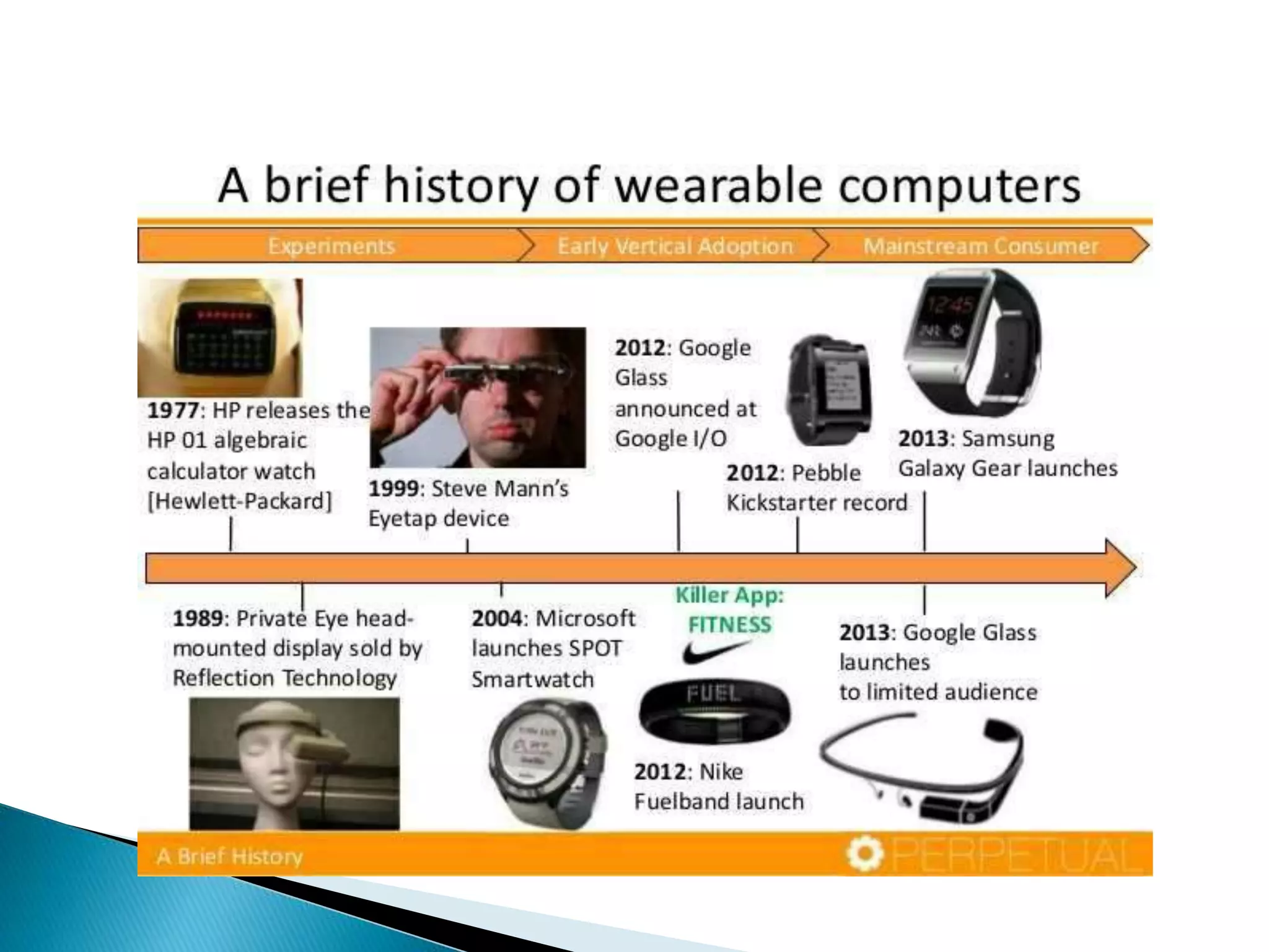 The document discusses wearable computing. It begins with an introduction and overview of wearable computers and then discusses their history, aims, features, implementation, applications, advantages, and disadvantages. Key points include that wearable computers are portable devices that can be worn and allow hands-free use. They are integrated into everyday objects like watches. The document discusses examples of early wearable devices and outlines common components of wearable computers like input and output devices. It provides examples of uses in military and healthcare applications. The conclusion discusses challenges to wider adoption of wearable computers.