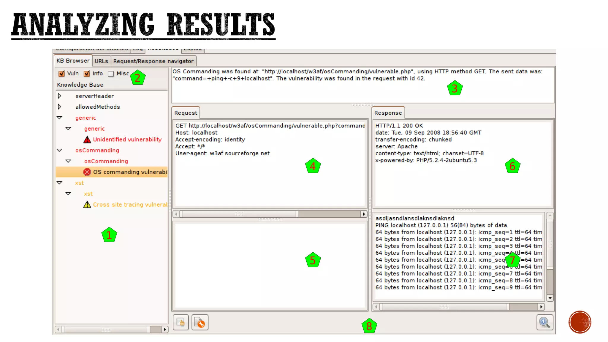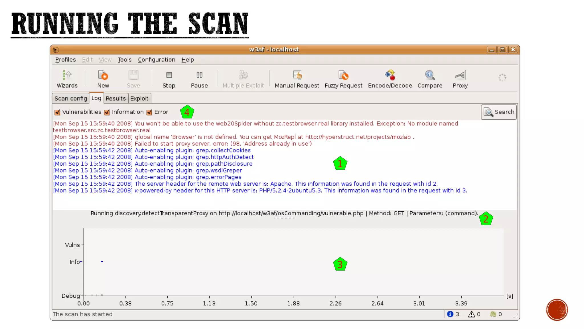 There’s a complete tab for results in w3af, and as there’re a lot of information to