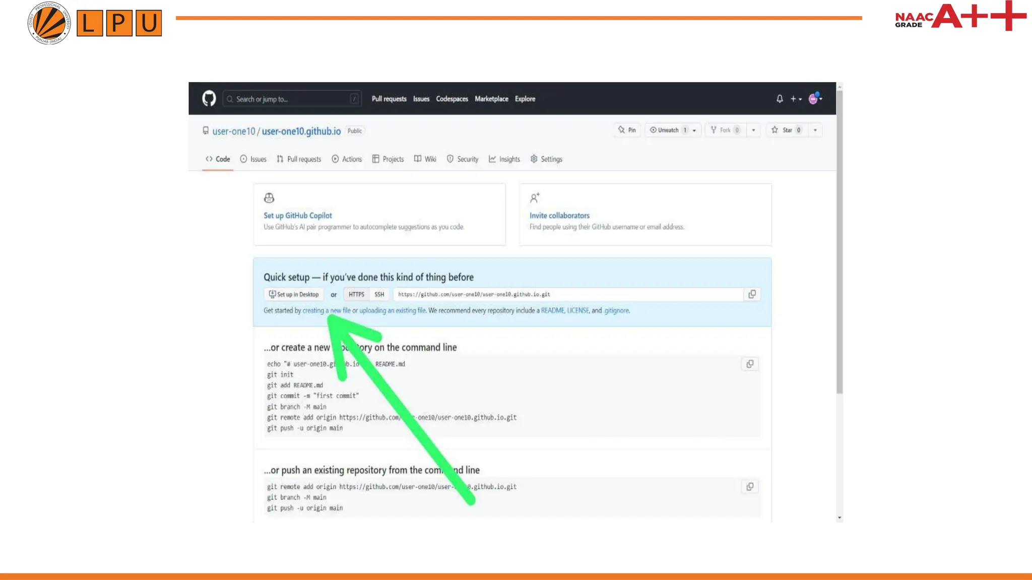 • You can also do it by clicking on the “new” button on your GitHub Dashboard.