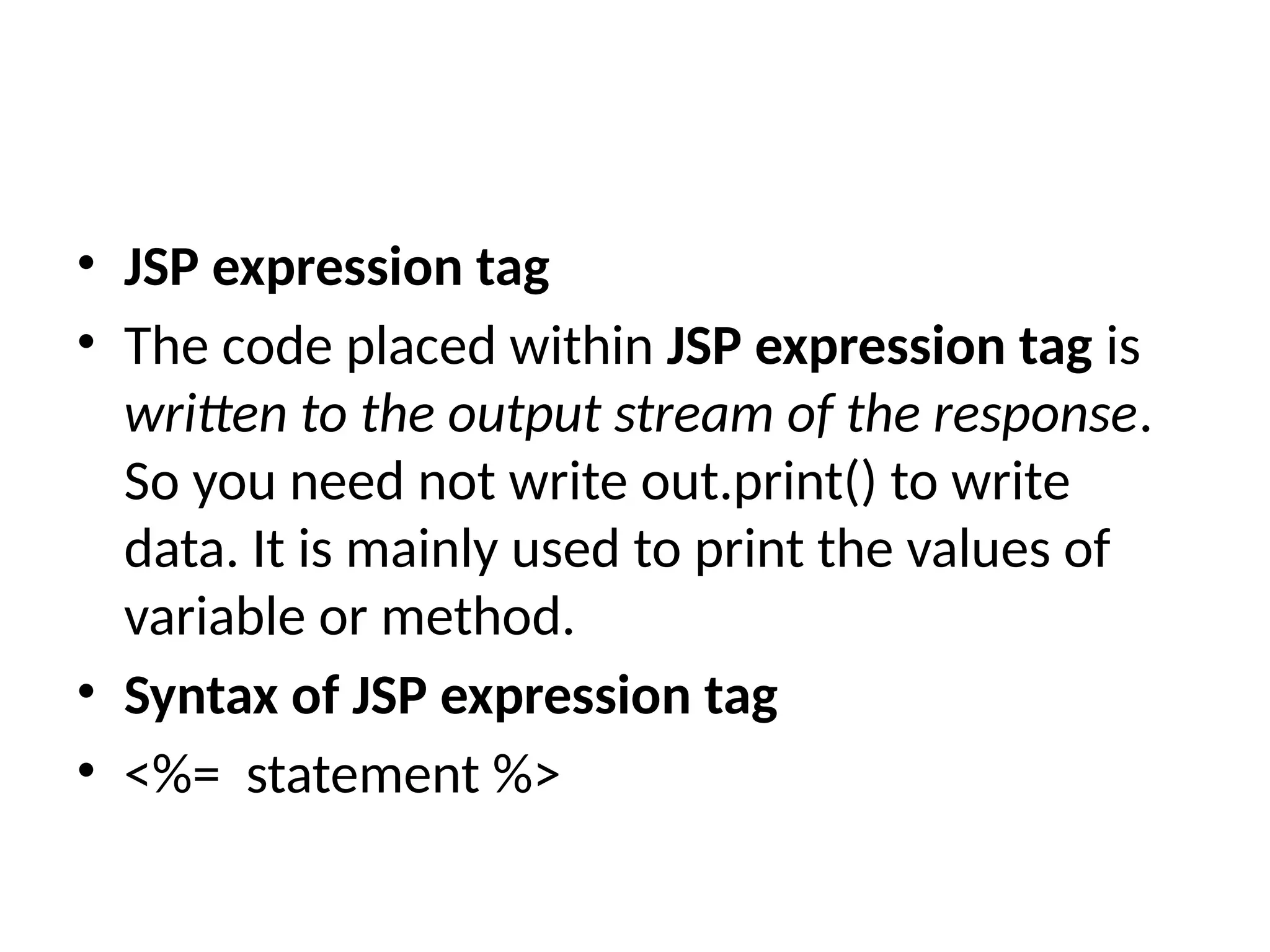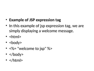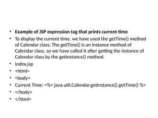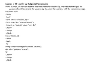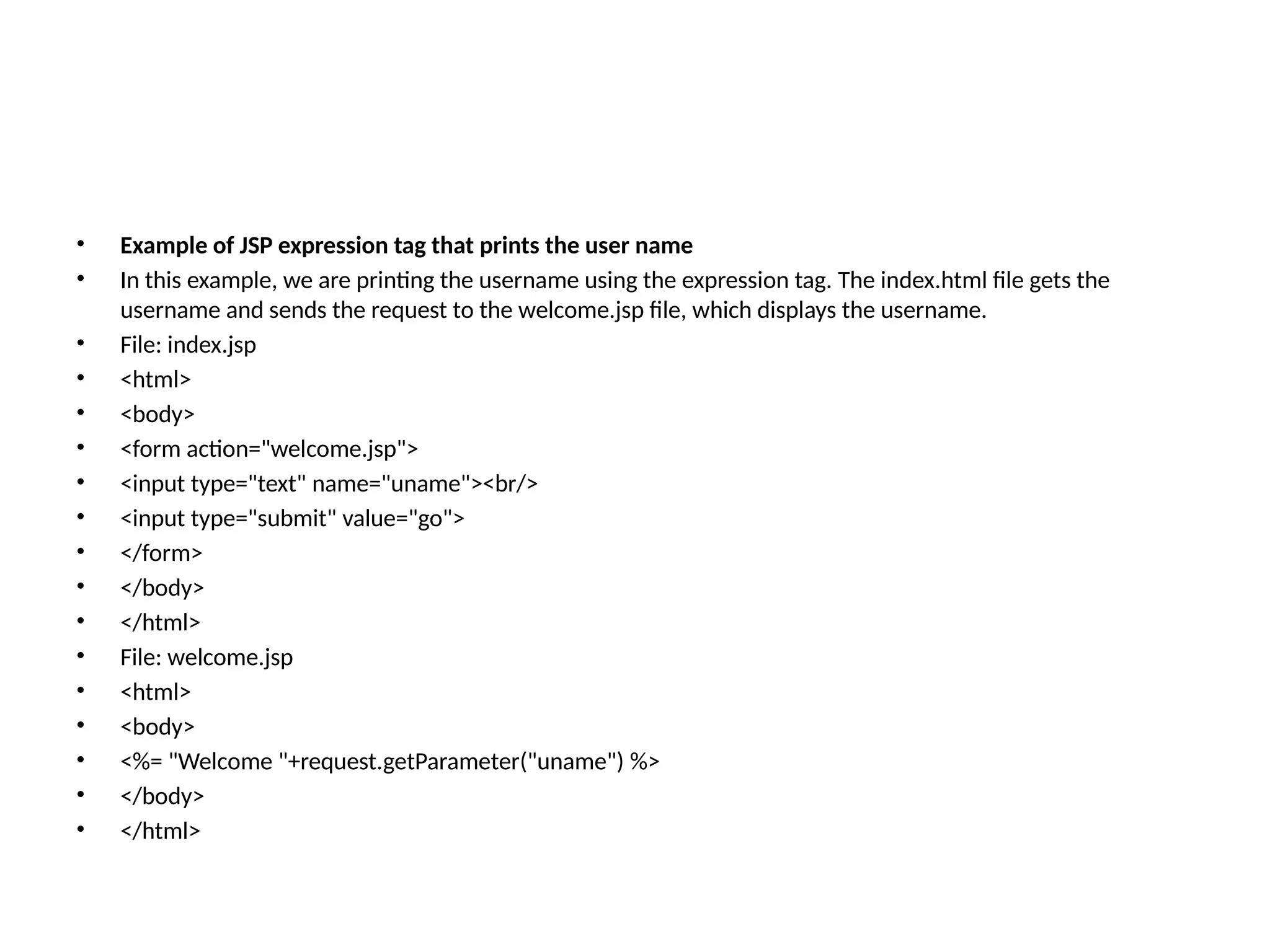 • In this example, we are printing the username using the expression tag. The index.html file gets the