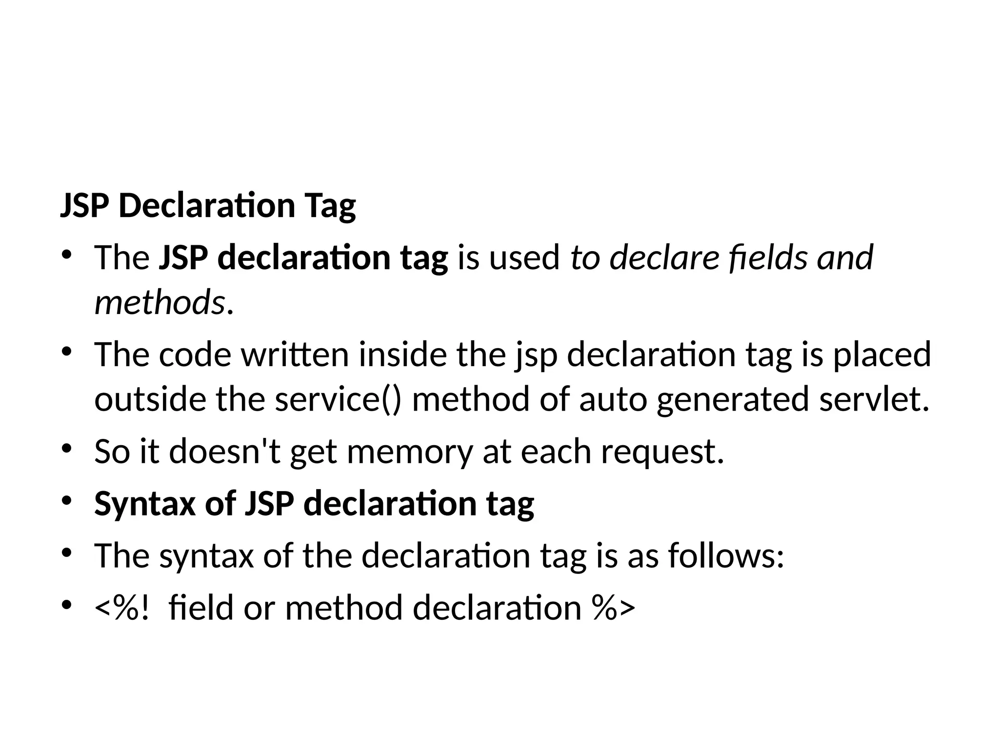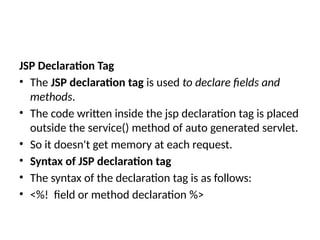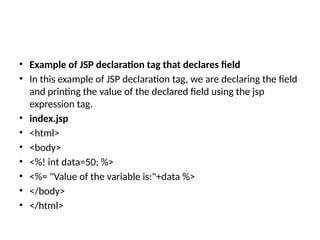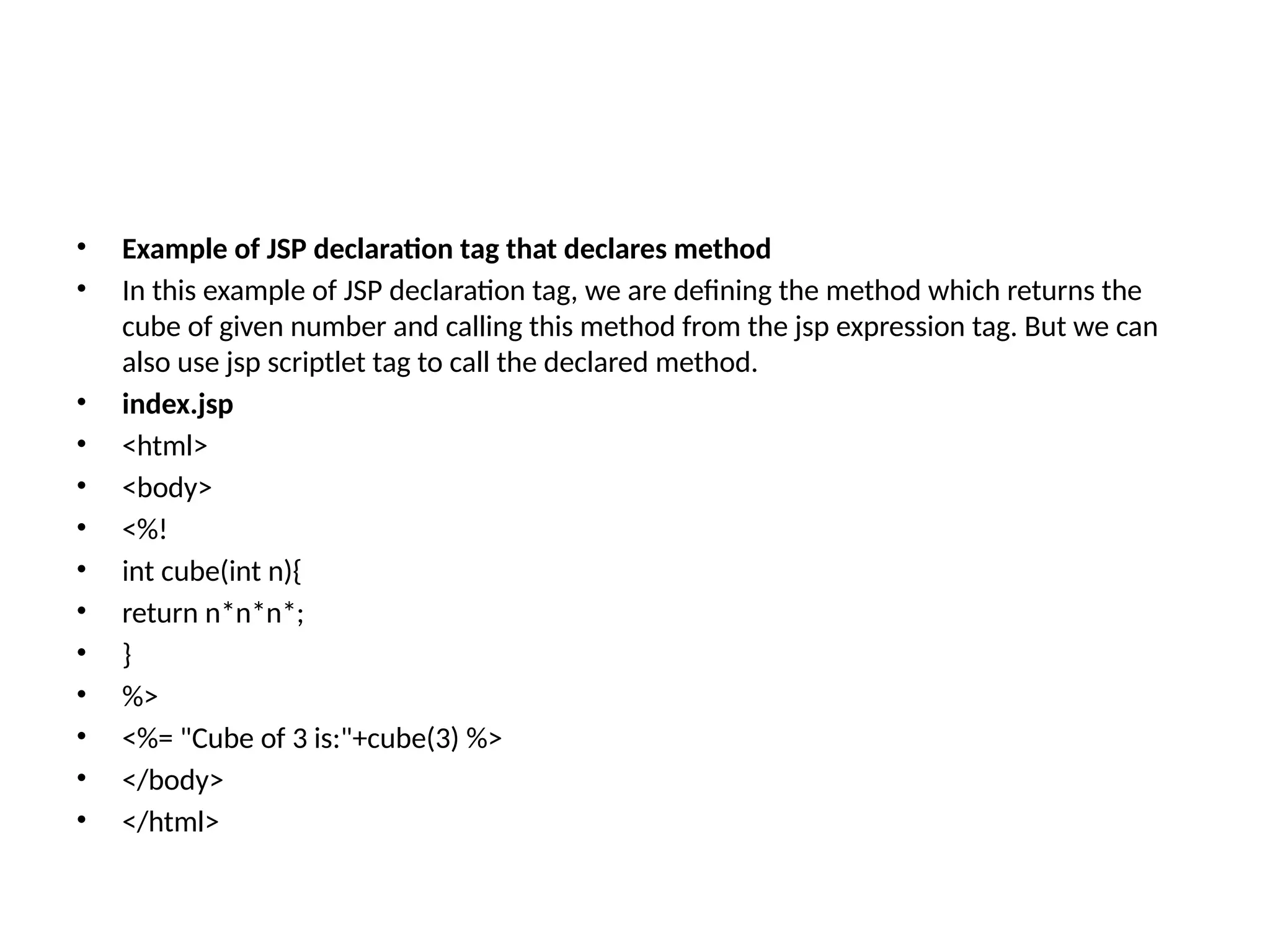 • In this example of JSP declaration tag, we are defining the method which returns the