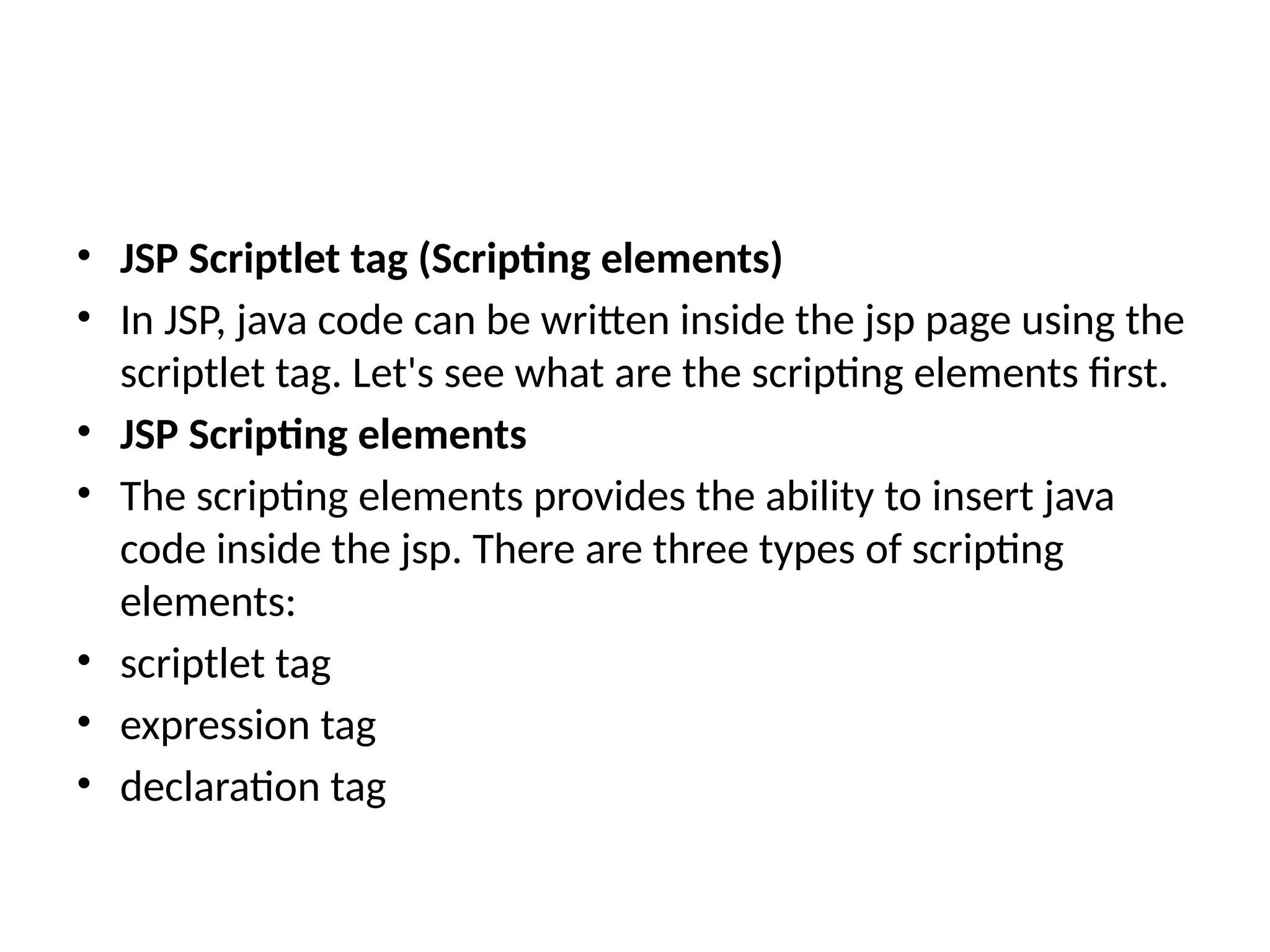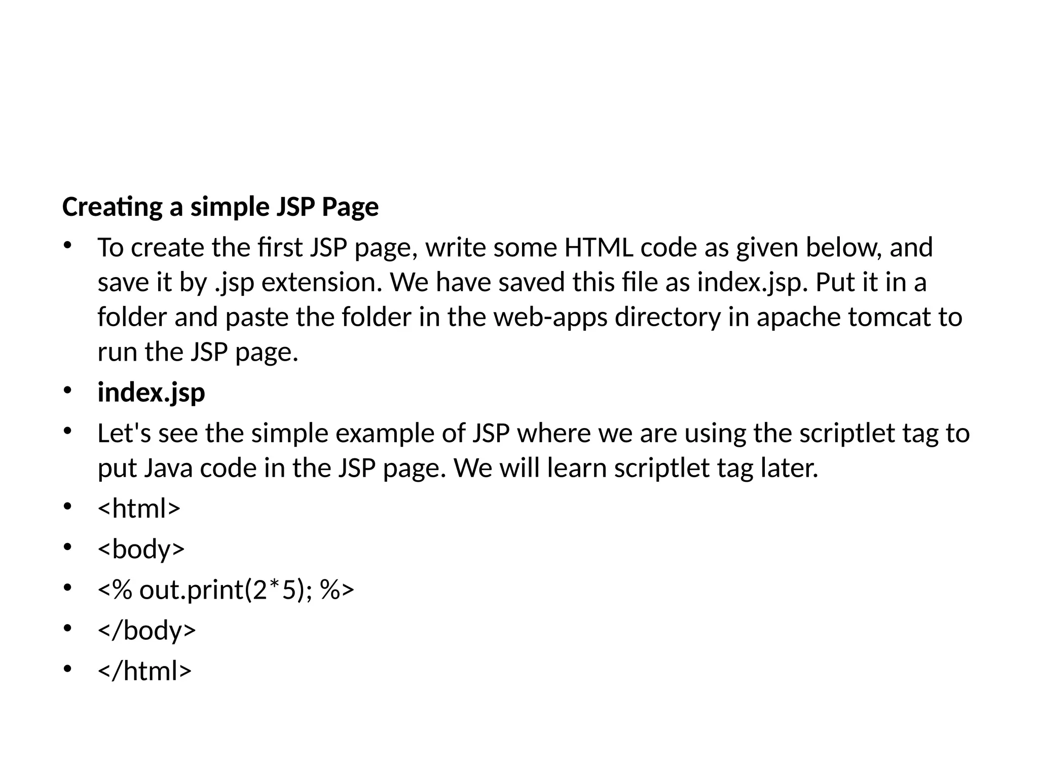 put Java code in the JSP page. We will learn scriptlet tag later.