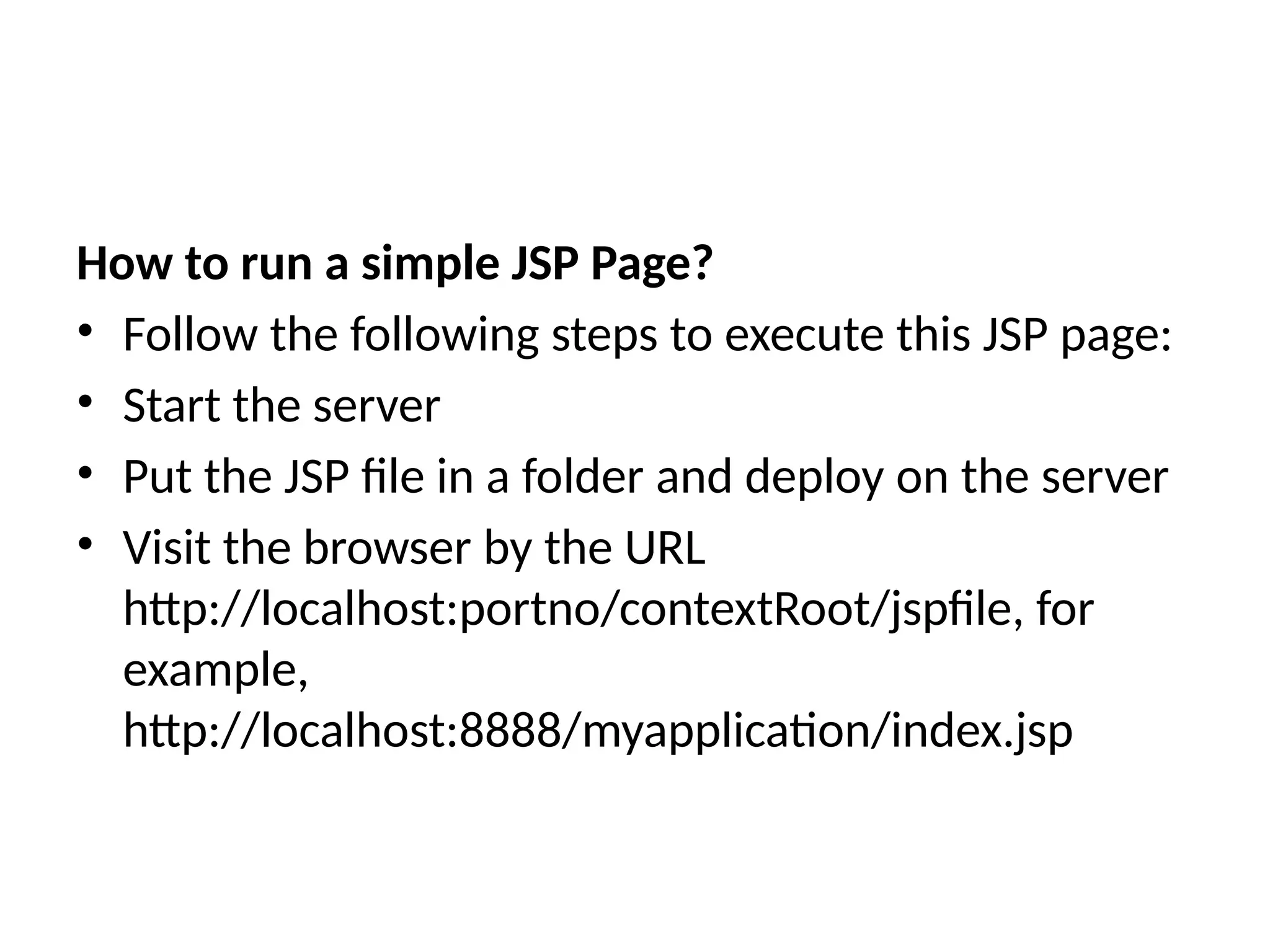 • If JSP page is modified, we don't need to recompile and redeploy the project. The Servlet code