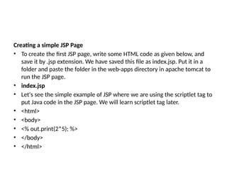 • Let's see the simple example of JSP where we are using the scriptlet tag to